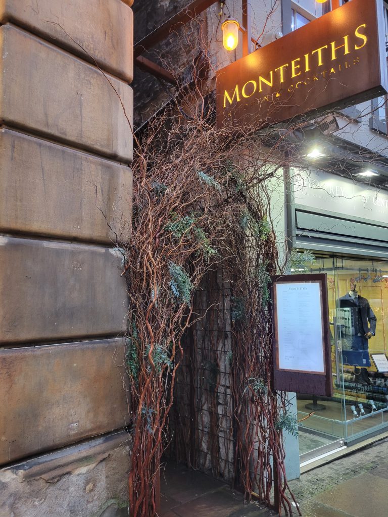 - Monteiths : Niché dans une charmante et étroite ruelle pavée juste à côté de la Royal Mile. C’est une adresse raffinée à Édimbourg, idéale pour un dîner romantique. Ce restaurant primé séduit par son ambiance feutrée, ses cocktails créatifs et sa cuisine écossaise moderne avec des produits locaux.
